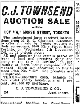 Previous Image Next Image 123 Morse Auction of house Toronto Star Oct. 23, 1902 123 Morse Toronto Star Oct. 23, 1902