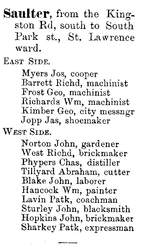 Previous Image Next Image 1878 City of Toronto Directory Saulter St 1878 City of Toronto Directory Saulter Street
