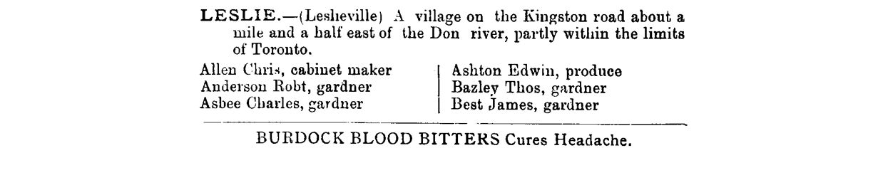 Previous Image Next Image 1882 County of York Directory and Gazeteer L1 1882 County of York Directory and Gazetteer Leslieville Part 1