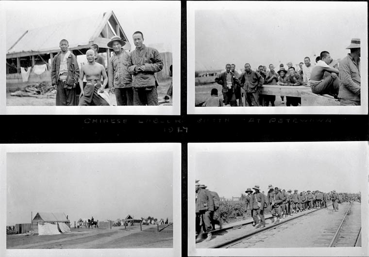 Previous Image Next Image 1917 (a) Chinese labourers (b) Coolie compound (c) Chinese labourers (d) Chinese detraining, Camp Petawawa, [Ont] 1917