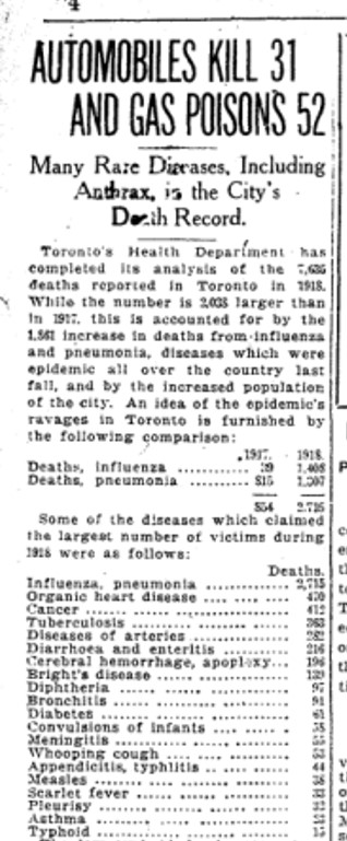 Previous Image Next Image 19190515 TS Statistics deaths Toronto for 1918 Toronto Star May 15 1919 1 Statistics deaths in Toronto for 1918, Toronto Star, May 15 1919