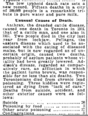 19190515 TS Statistics deaths Toronto for 1918 Toronto Star May 15 1919 2