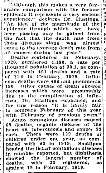 19200319 GL Flu epidemic stats vs 1919 Globe, March 19, 1920 2