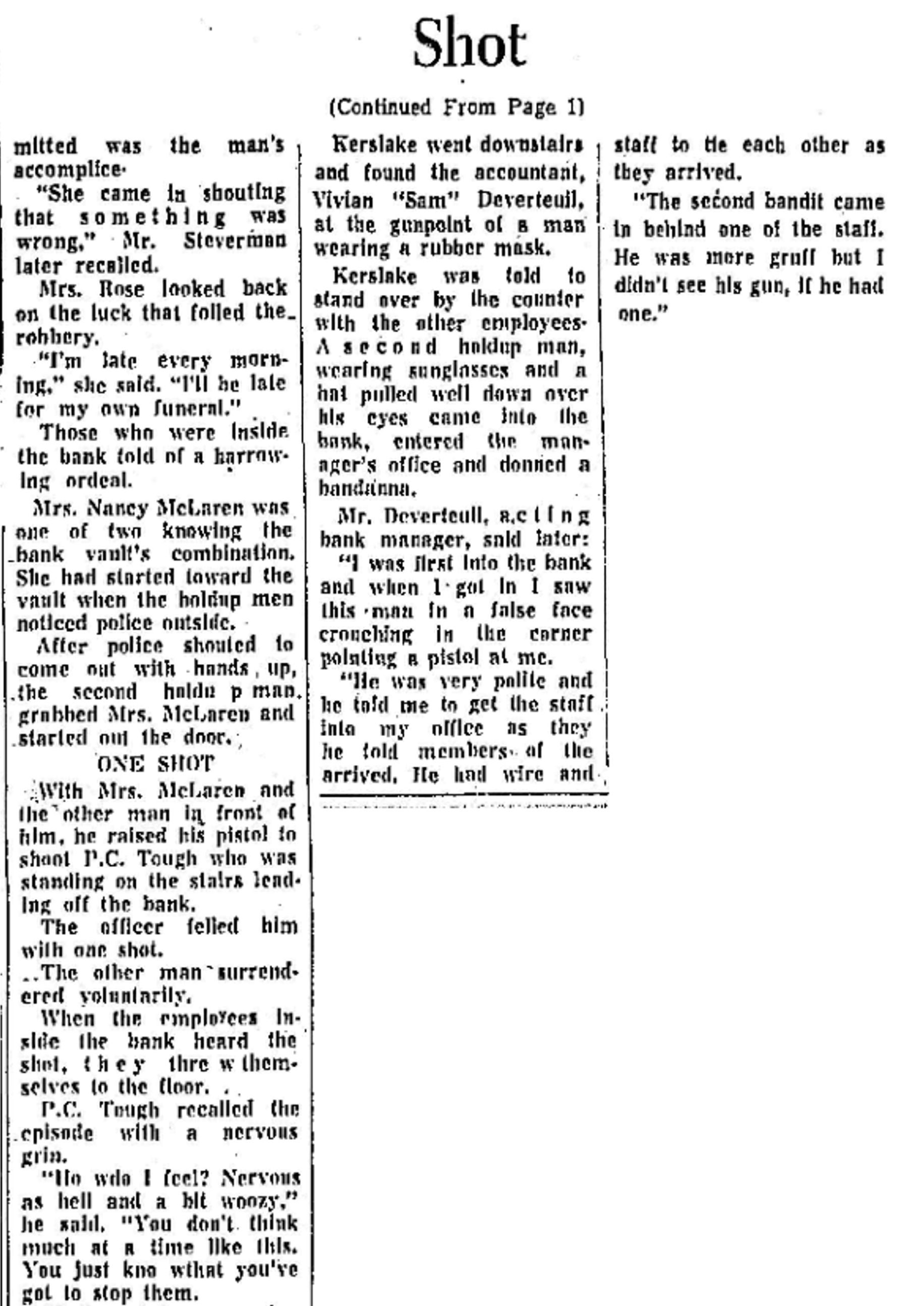 19640814 TD Bank Robbery, Queen & Logan, Toronto Star, August 14, 1964 11