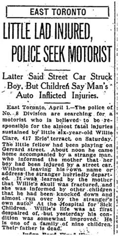 19180401TS Willie Clare 417 Erie terrace hit by car