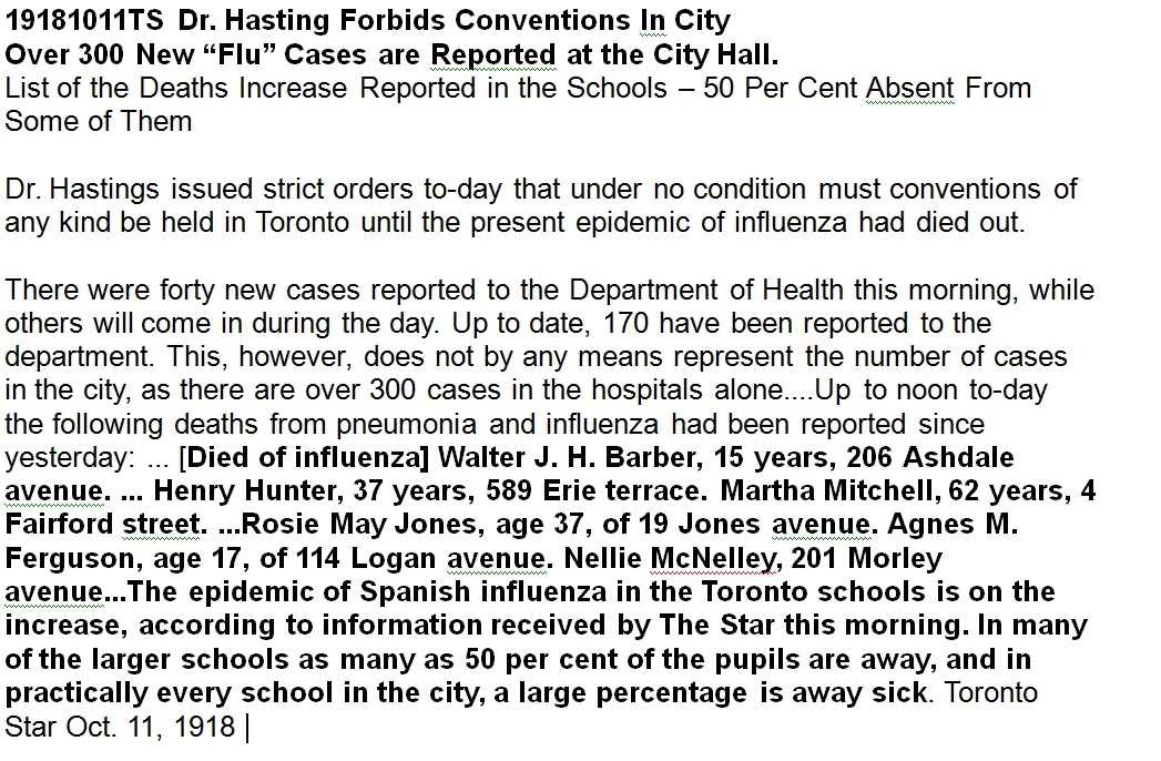19181011TS Flu deaths Dr Hastings