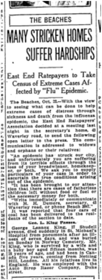 19181022TS East End Ratepayers Assoc helps flu victims