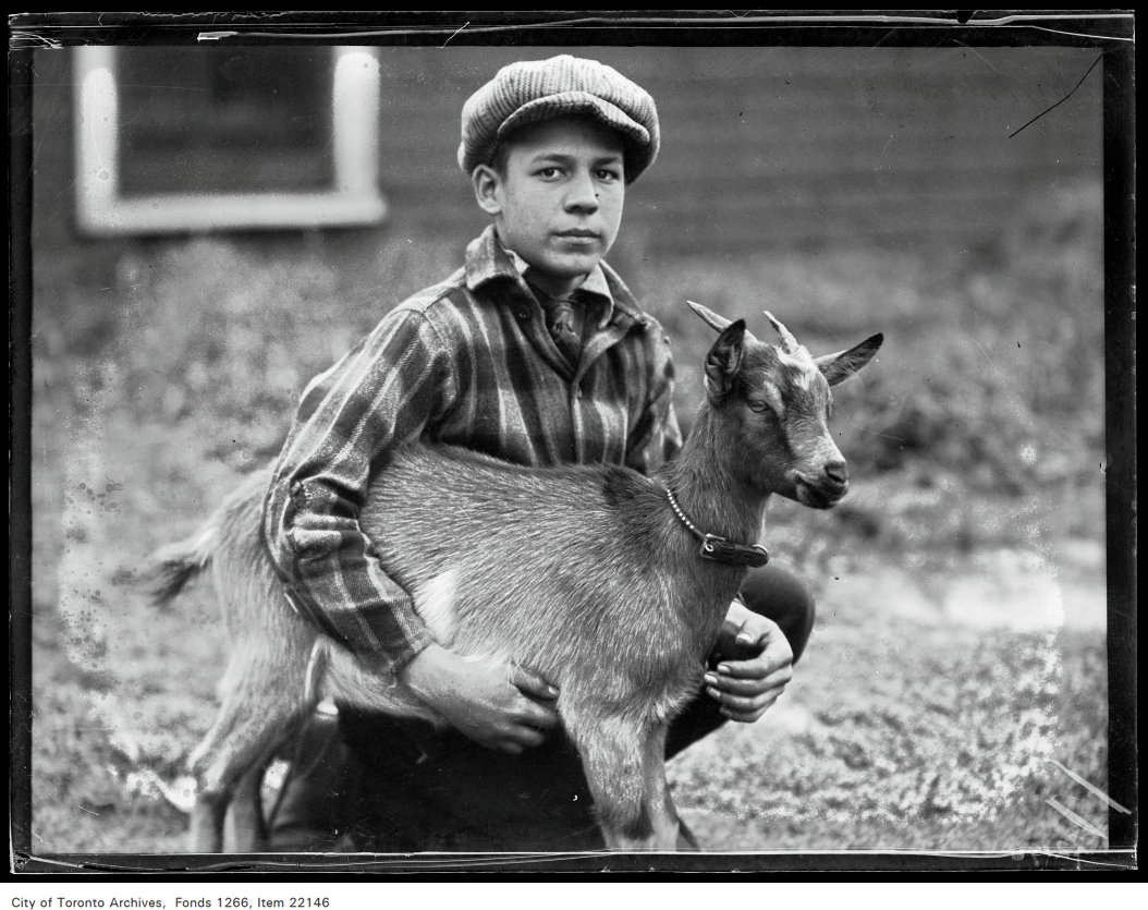 Broadview Boys’ [Fall] Fair, group of boys with rabbits Stan Hollywood, 90 Chatham, Kingston Beamish, 128 Chatham, Joe Edwards, 400 Pape Oct 2, 1930Broadview Boys’ [Fall] Fair, Nelson McDole, 165 First Avenue, goat Kiddo Oct. 2, 1930