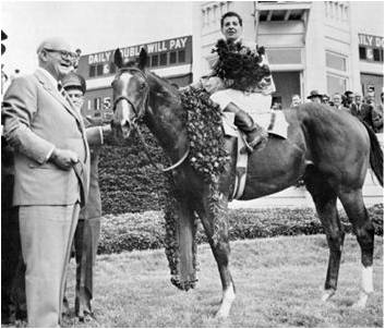 E. P. Taylor, jockey Bill Hartack, and Northern Dancer in the winner’s circle at the 1964 Kentucky Derby. (Photo from Heritage Toronto)