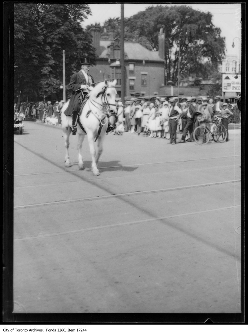 Previous Image Next Image Orange parade, marshall on white horse. – July 12, 1929 Orange parade, marshall on white horse. – July 12, 1929