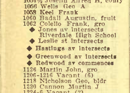 1912 Directory Gerrard St E North Side