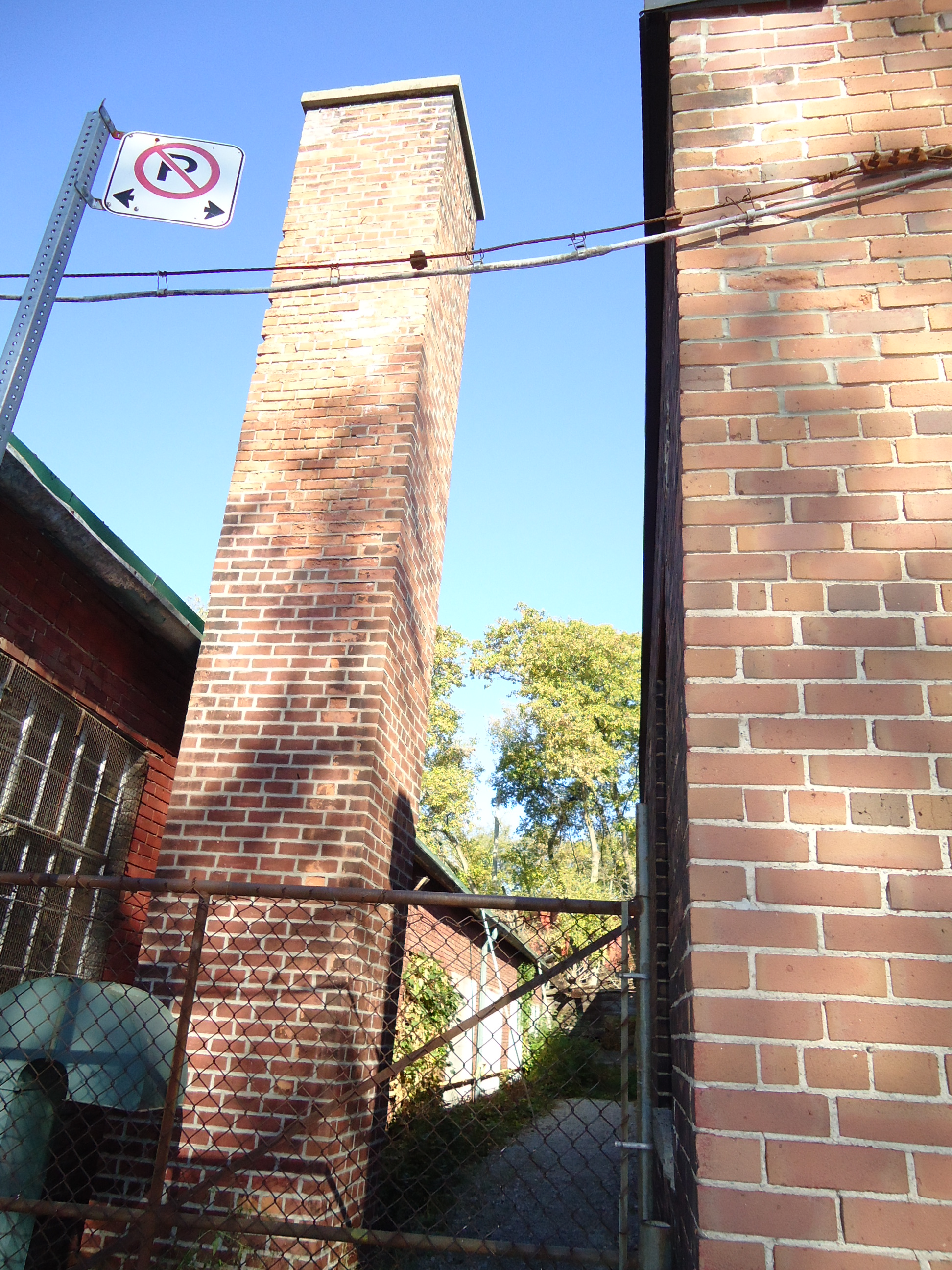 The chimney of a brick kiln, Wagstaff Brick Plant, Wagstaff Drive. This is the only brickplant left standing in Bricktowne, the area along Greenwood Avenue. October 17, 2017 photo by J. Doucette