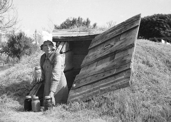 Previous Image Next Image 1936 woman Kauffman County storm cellar Woman, preserves and her root cellar. Root cellars or “root houses” also served as storm shelters.