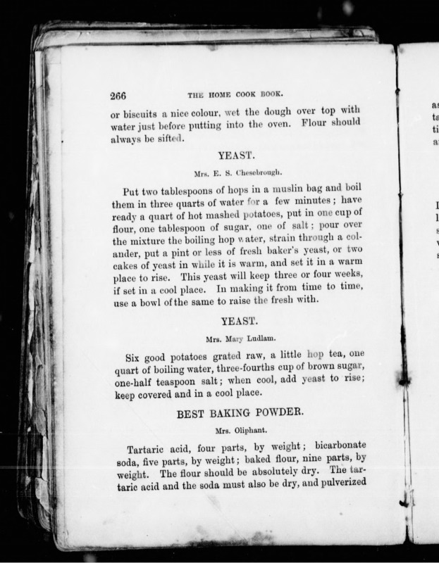 p. 266, Hop yeast, The Home Cook Book, 1877