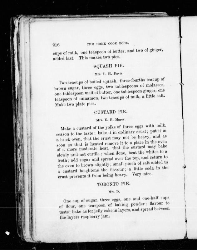 p. 216, Toronto Pie, The Home Cook Book, 1877,