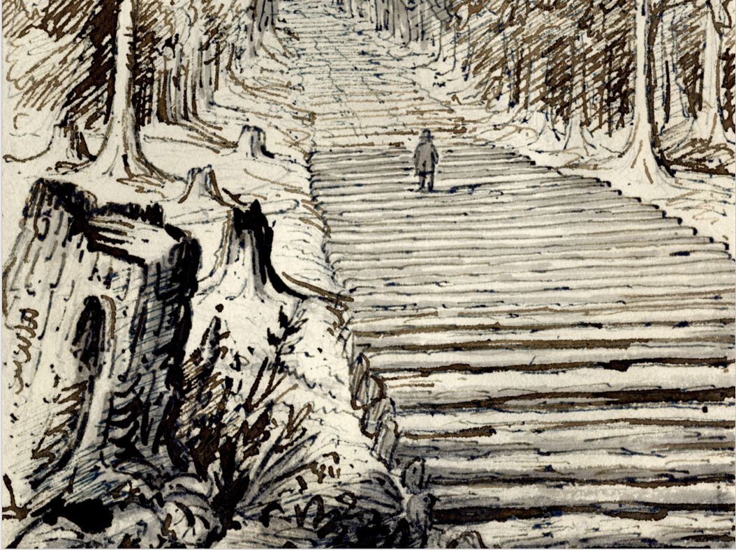 Detail from Corduroy Road Over a Swamp in Orillia Township, Ontario
