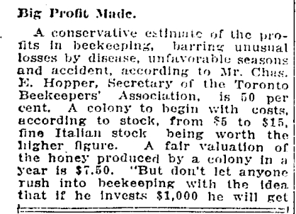 There were hundreds of urban beekeepers a century ago! For more about urban beekeepers in Toronto go to: http://urbantorontobeekeepers.org/