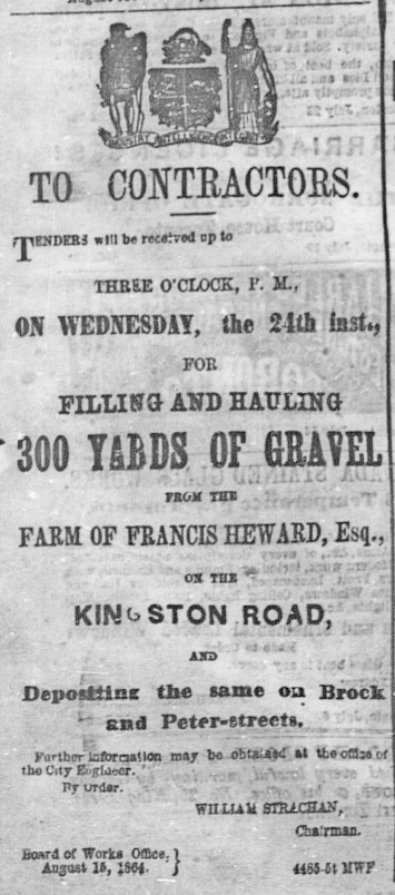 Heward Avenue south of Queen, west side — Cracks in brickwork of house – February 5, 1912 Heward Avenue south of Queen, west side — Cracks in brickwork of house – February 5, 1912 2Heward Avenue south of Queen, west side — Cracks in brickwork of house – February 5, 1912 A box drain, a drainage pipe made of wood, north west corner of Pape Avenue. This is the lost Holly Creek.Hewards Creek 2015 This lost creek comes to the surface in construction excavations. Photo by Joanne Doucette