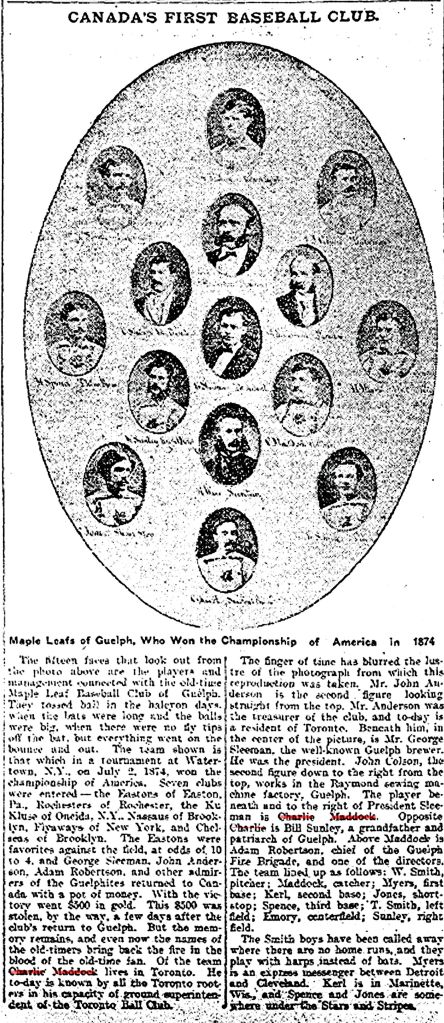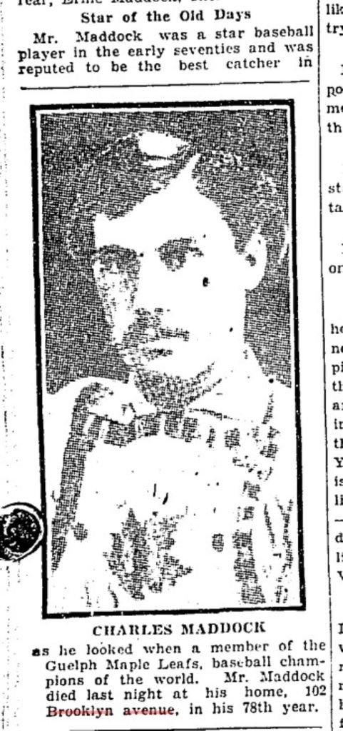 Guelph Maple Leafs, 18851886 Game of BaseballCharles Maddock obituary, Toronto Star, April 27, 1927Charles Maddock obituary, Toronto Star, April 27, 1927Charles Maddock obituary, Toronto Star, April 27, 1927Charles Maddock obituary, Toronto Star, April 27, 1927