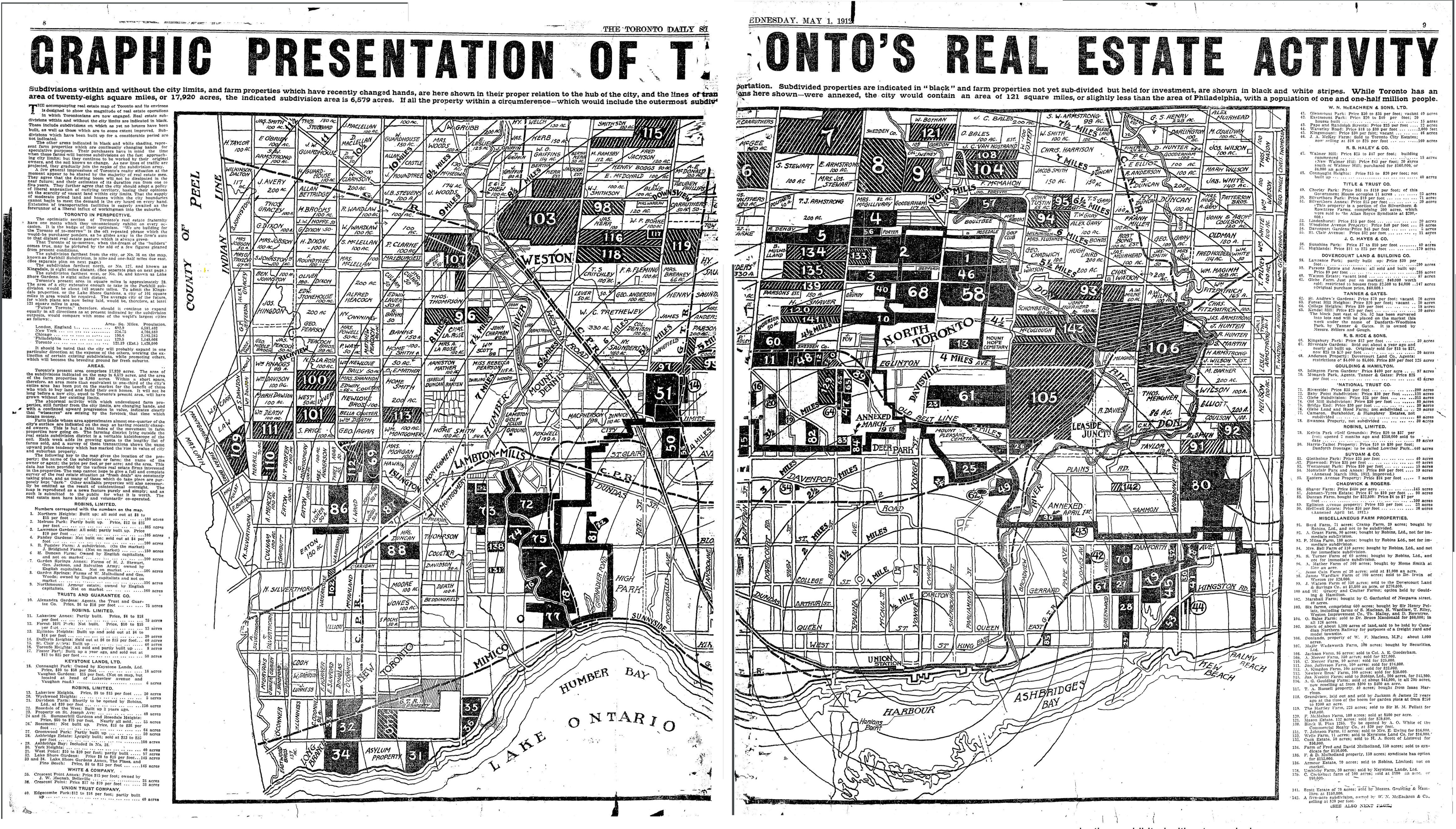 Previous Image Next Image Graphic Presentation of Toronto’s Real Estate Actity, Toronto Star, May 1, 1912 Graphic Presentation of Toronto’s Real Estate Activity, Toronto Star, May 1, 1912, p. 8-9