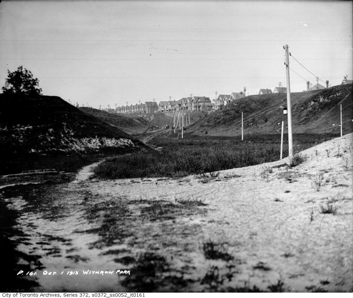 A. C. Forster Boulton: I remember as a small boy catching speckled trout in the brooks in Rosedale. East of the Don River and north of the Kingston Road was a wilderness. Sometime in the sixties of the last century a gang of robbers infested that district. They were known as Brook’s Bush Gang, but were finally captured and punished. Now houses and streets cover the whole neighbourhood and security reigns where once was lawlessness and crime.” Globe and Mail, February 17, 1940