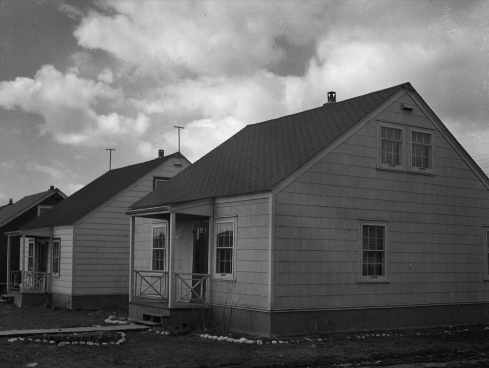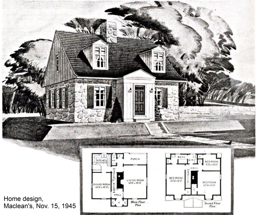 I think of Ajax, Ontario, a war-time community originally built in the Second War for munitions workers with streets lined with prefabricated, war-time bungalows. These were small narrow, shoe-box shaped houses with a low-pitched gable roof or sometimes a hipped roof. They were supposed to be temporary, but were well made and many parts of Toronto also have lots of these bungalows.