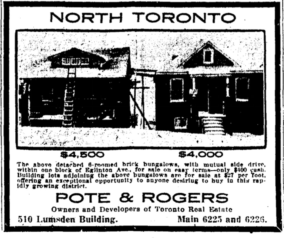 By 1923, there was a building boom across Toronto as prosperity had returning following the brief depression of 1919. The area filled in with rows of brick bungalows, detached, duplexes and triplexes: