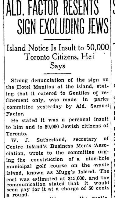 Previous Image Next Image 29 Gentiles only Toronto Island sign Toronto Star, March 29, 1930 1 Gentiles only Toronto Island sign Toronto Star, March 29, 1930
