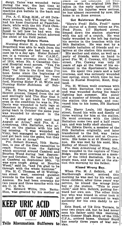 Previous Image Next Image 759 CR 19190113TS Returning soldiers woundedB 759 Erie Terrace Last paragraph – Little Erin Boyd has never seen his dad. Toronto Star, Jan. 13, 1919