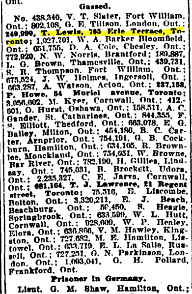 785 Erie Terrace Globe, Aug. 31, 1918 The use of chlorine gas and mustard gas so damaged the soldiers’ lungs and hearts that many died “before their time” or were disabled for the rest of their lives. Many died of lung cancer.
