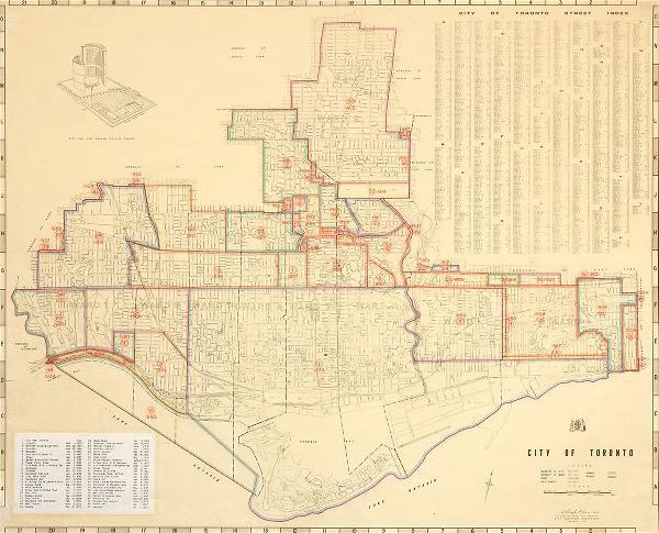 City of Toronto Annexation Map, 1915 as updated by A. Douglas Ford, City Surveyor, City Surveyors Department, January 1, 1967