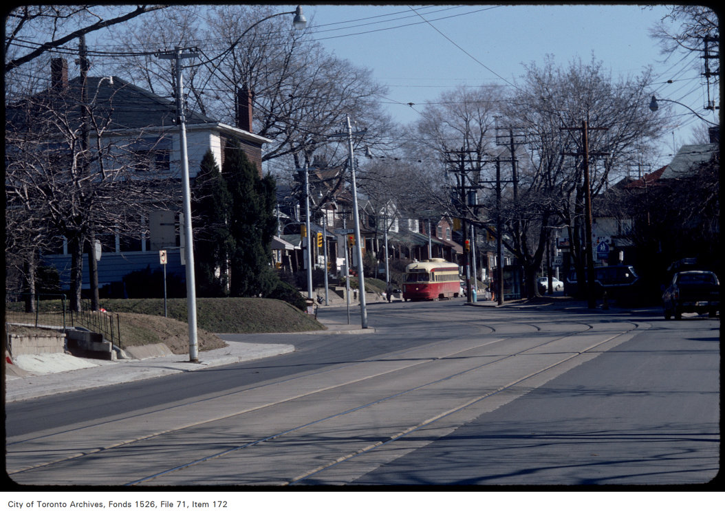 Previous Image Next Image View of Gerrard Street East, looking east across Hollywood Crescent April 3, 1984 View of Gerrard Street East, looking east across Hollywood Crescent. City of Toronto Archives.