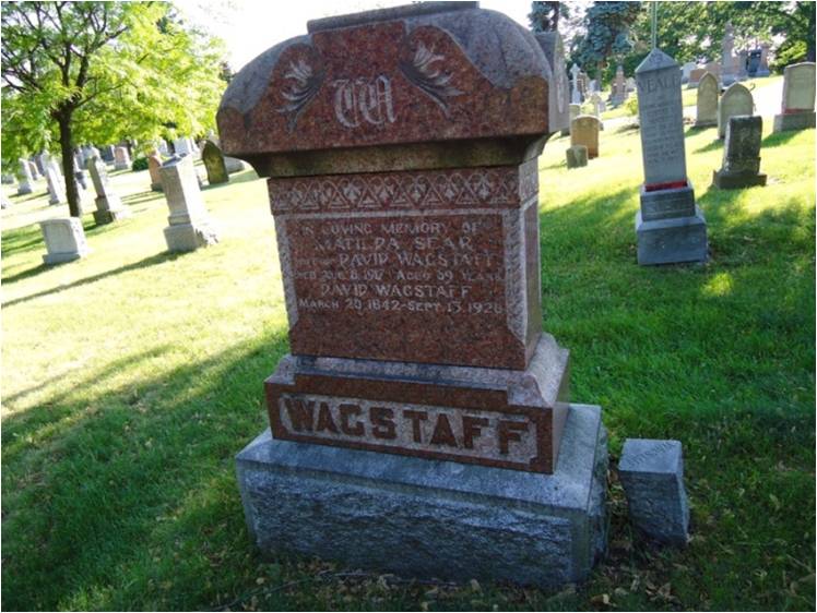 Matilda Sear died in 1917. David Wagstaff married Annie Louisa Cruttenden on September 4, 1920. He died on September 13, 1928, in his new home at 650 Broadview Avenue. He was 86.