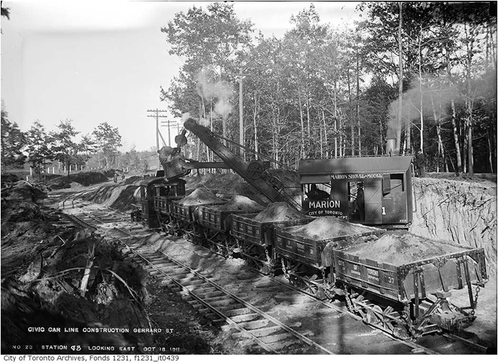 Previous Image Next Image Building streetcar line Building Streetcar Line. Courtesy of the Toronto Public Archives.