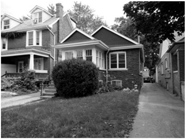 Previous Image Next Image Bungalow and Villa Bungalow, Leslieville, with a “double villa” or duplex beside it. Spring 2010. Photograph by the author.