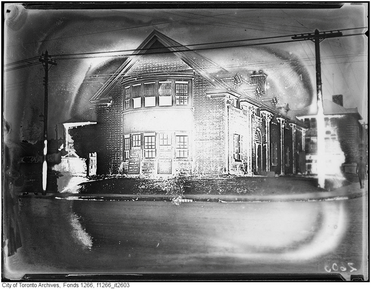 New Library, Gerrard St. E. and Ashdale Ave., May 13, 1924, City of Toronto Archives. (The photographic negative has been damaged.)