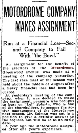 By the fall of 1915 the Motordrome Company was bankrupt.