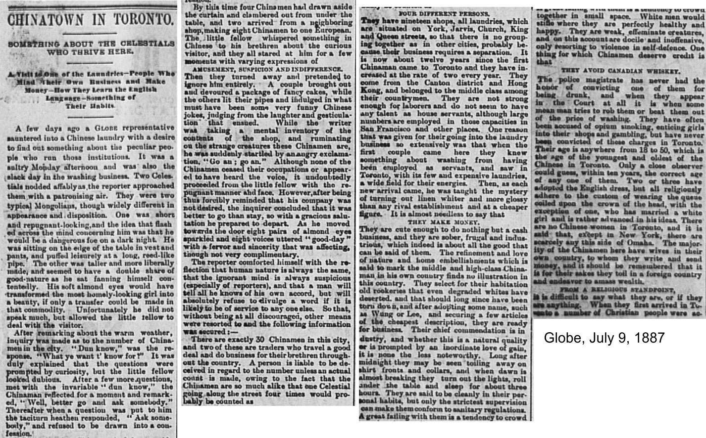 Globe, July 9, 1887 Description Toronto Chinatown1