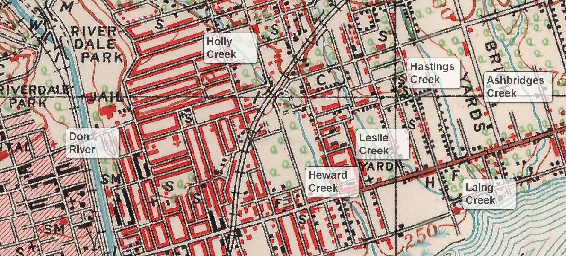 Leslieville creeks 1909 mid labelled