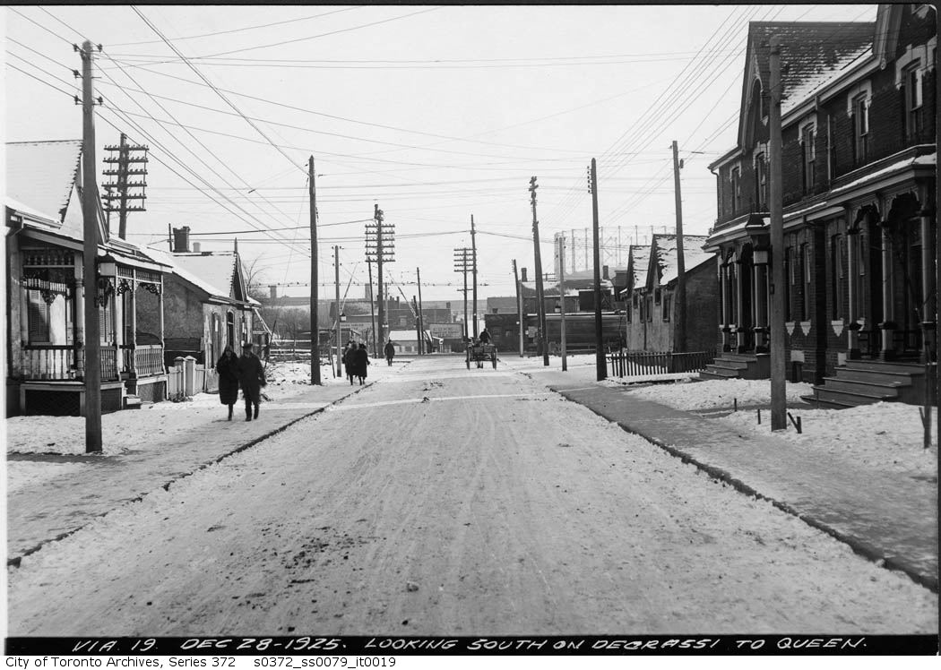 Previous Image Next Image Looking south on Degrassi to Queen – December 28, 1925 Looking south on Degrassi to Queen – December 28, 1925