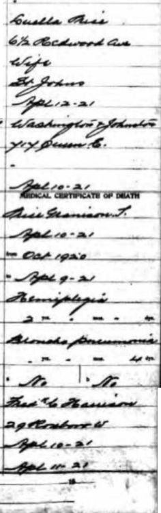 Grandison Price passed away on April 10, 1921, before Louella. He had had a stroke some years earlier and was partially paralyzed. He been in the Hospital for Incurables since October 1920.