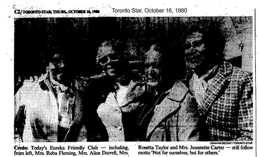 The women of the Eureka Club were determined to reach out with assistance, tactfully and privately, on a one-to-one basis. Whatever the need was they quietly met it to the best of their ability. They never sought publicity and, by and large, they didn’t get it. The Toronto Star of October 16, 1980 was an exception: