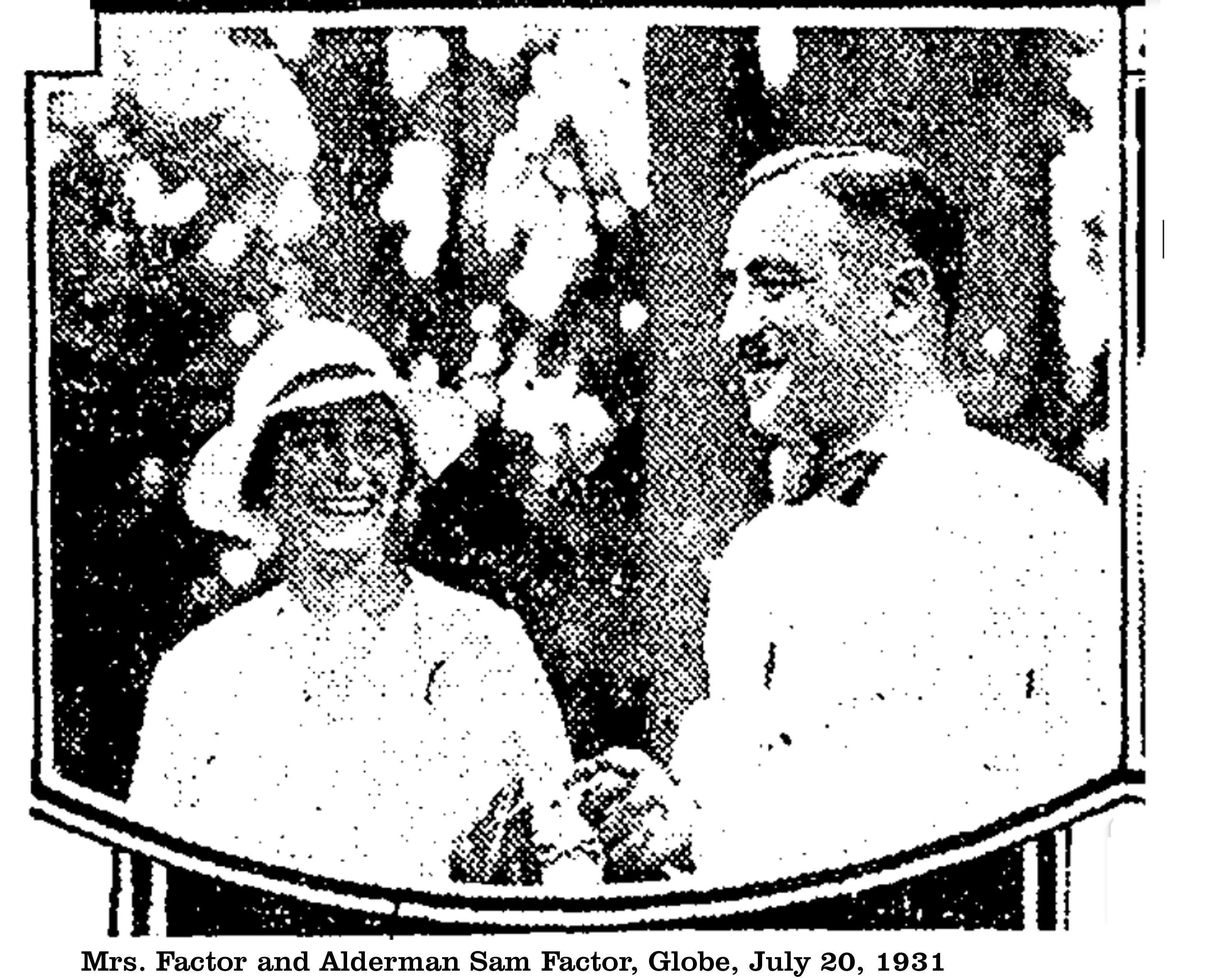 Previous Image Next Image Mrs. Factor and Alderman Sam Factor, Globe, July 20, 1931 Mrs. Factor and Alderman Sam Factor, Globe, July 20, 1931