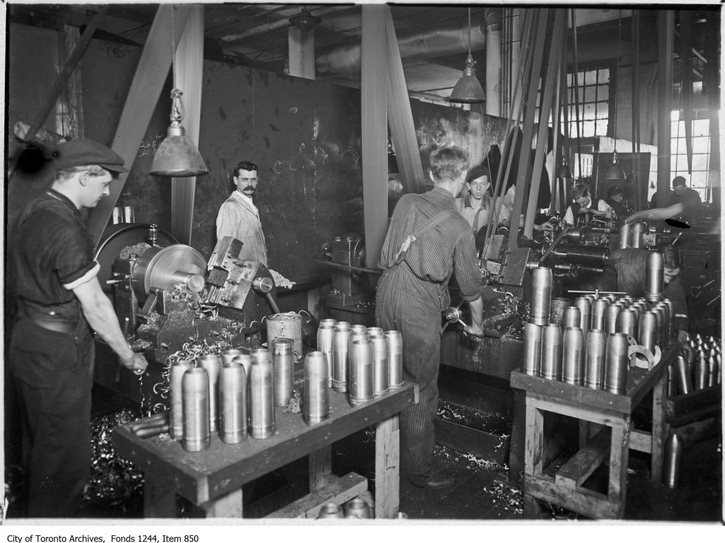 Previous Image Next Image Munitions factory. – [1915?] Munions factory, c. 1915, William James family fonds, City of Toronto Archives