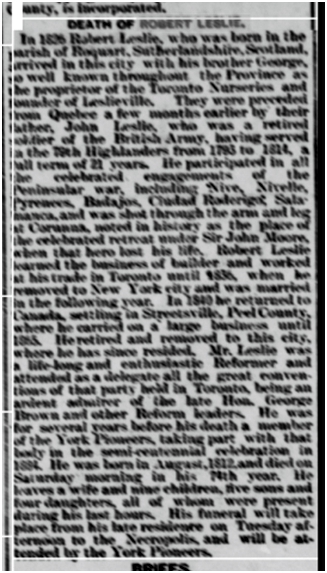 Obituary, Robert Leslie, Globe, Jan. 4 1886