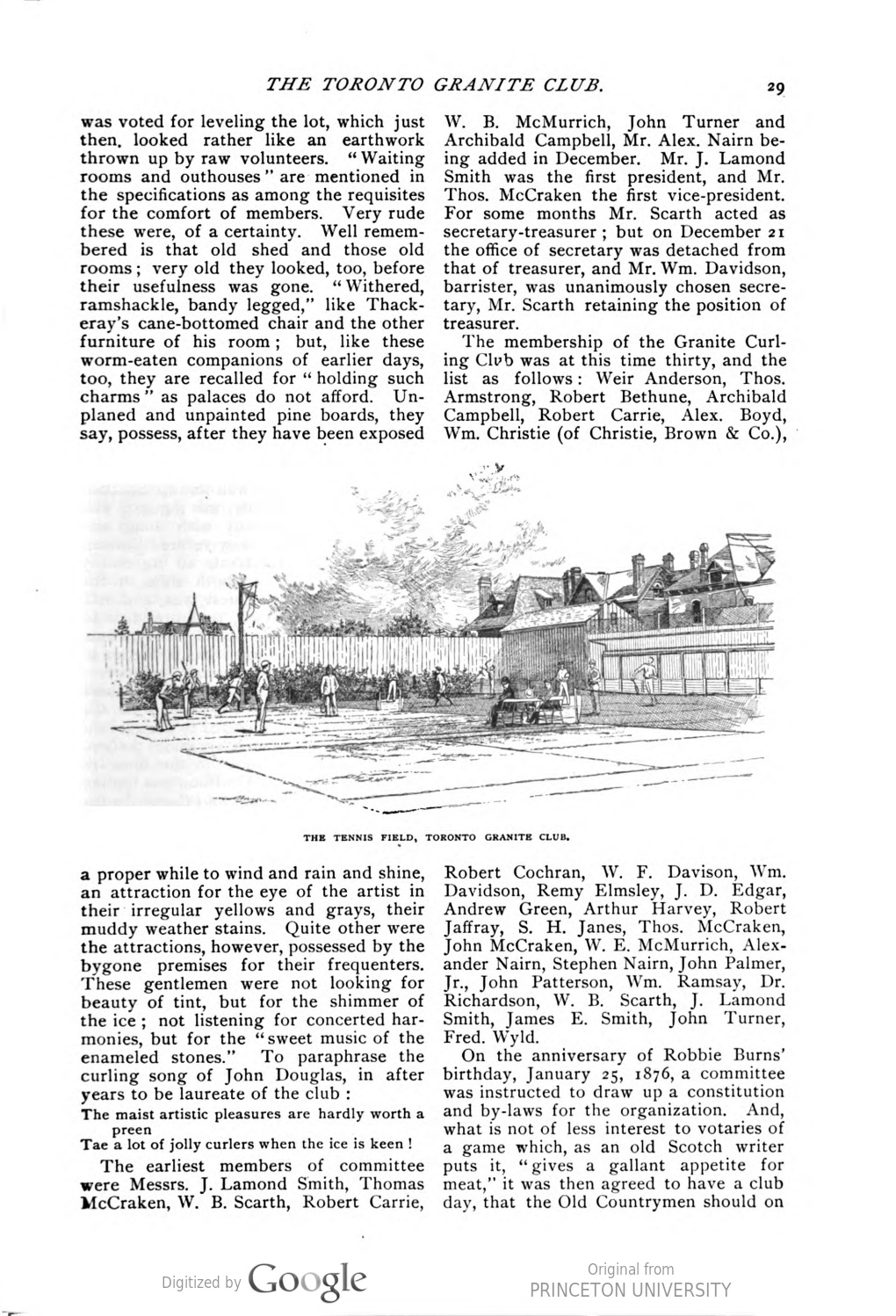 Outing. v.15 (Oct 1889-Mar 1890), 29. Most of Toronto’s wealthiest citizens belonged to private clubs such as The Granite Club and prestigious churches such as St. James Cathedral. They wintered at the same resorts. In many ways the wealthiest class in Toronto was like a small village, as Leslieville had been. They were god parents to each other’s children; They went to the same schools and universities. They married each other and buried each other and lie in the same cemeteries. Often they are in huge, elaborate mausoleums like those in St. James Cemetery and Mount Pleasant Cemetery. They also gossiped, had affairs, shared good times and bad, grieved over lost children. In short they were human just like anyone else — no better and no worse. There was little “old money” in Toronto and many had climbed the social ladder through hard work, risk-taking, luck and good timing. Though some were scoundrels in pinstrips, most were more or less devout, principled and generous. When the Shacktown Crisis hit, they had the money to make a difference. And they gave it.