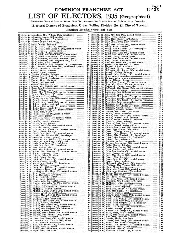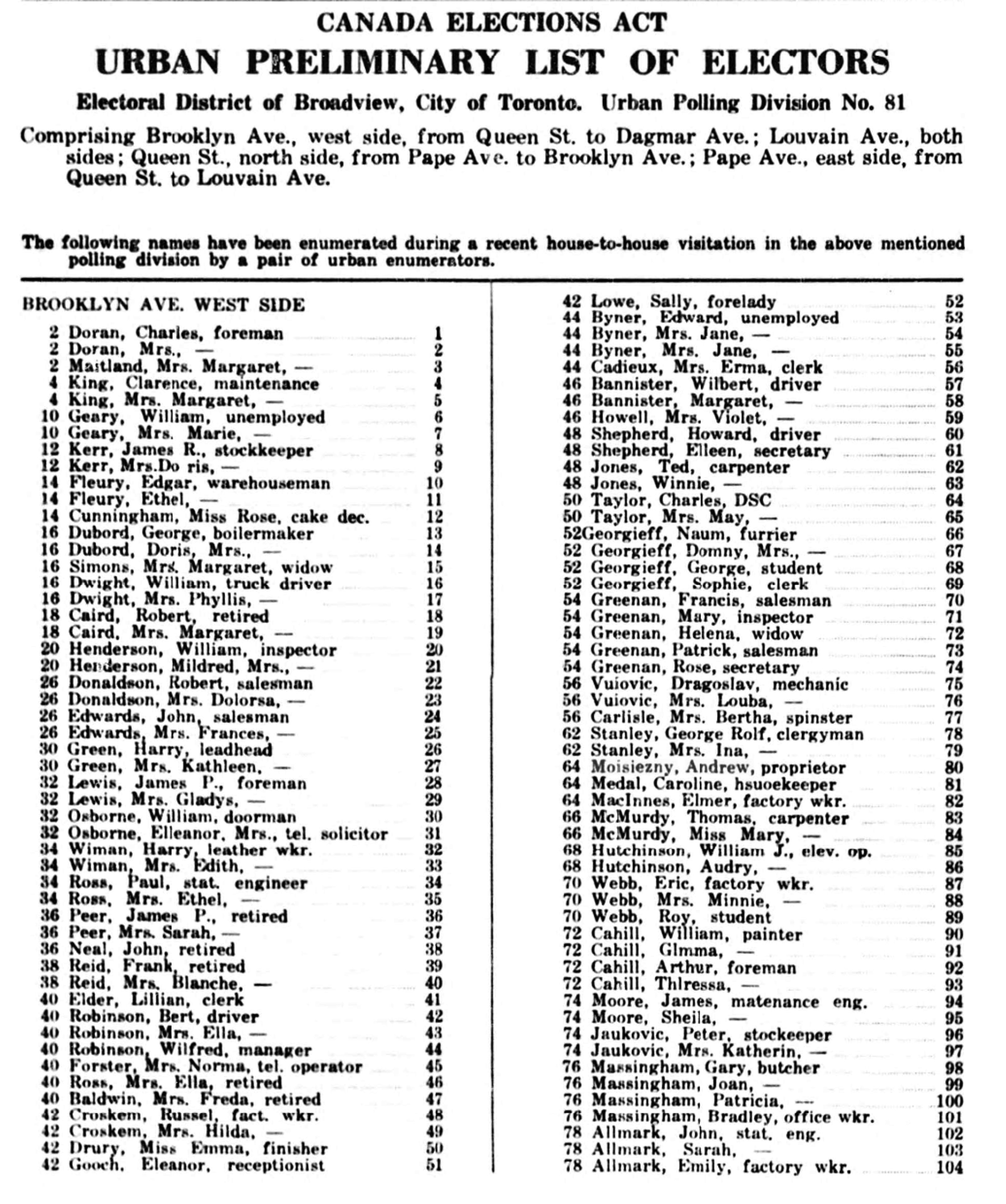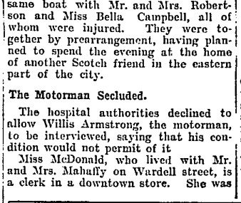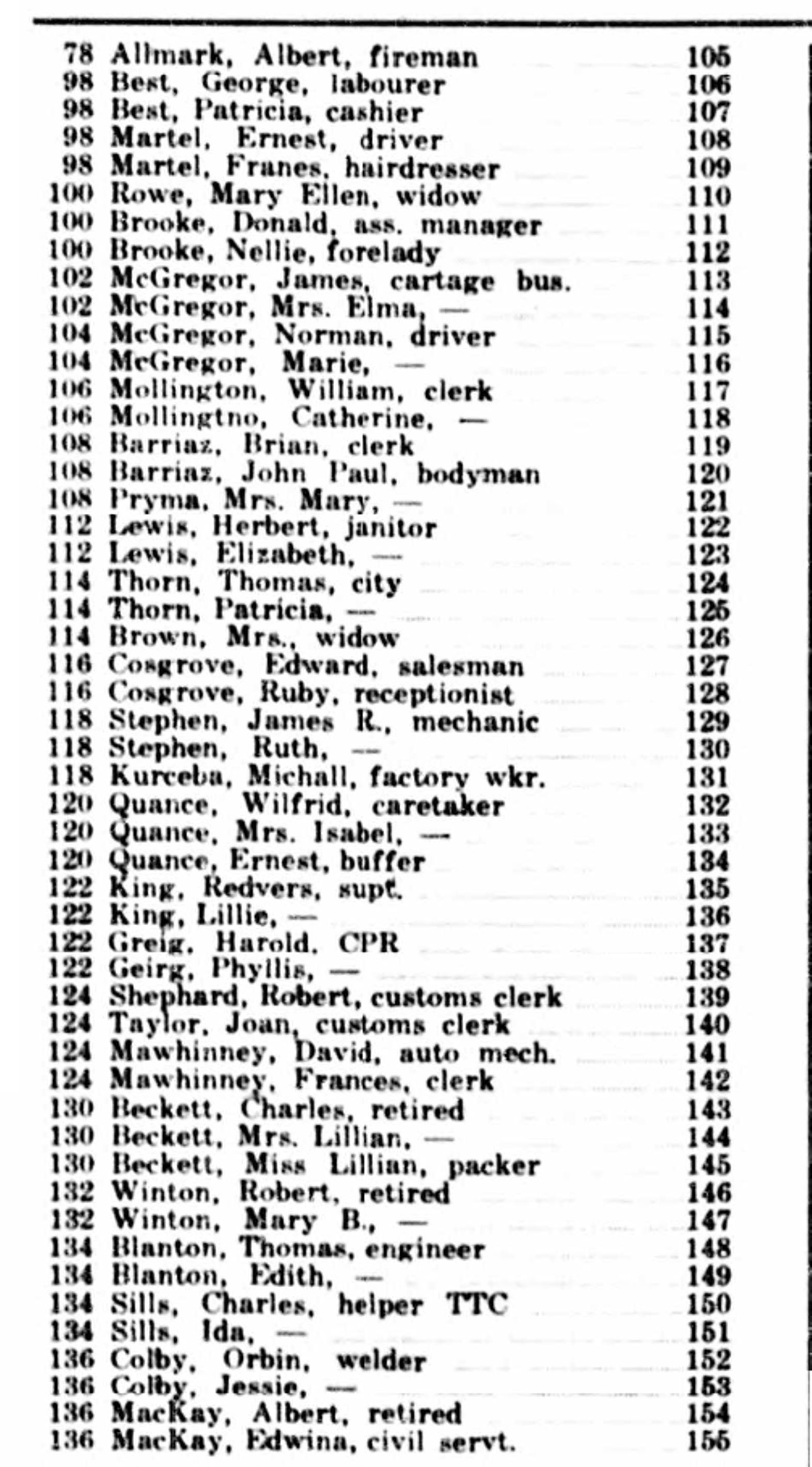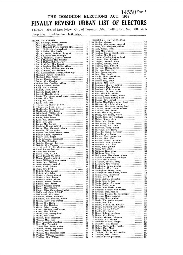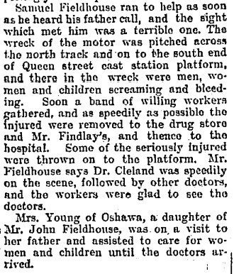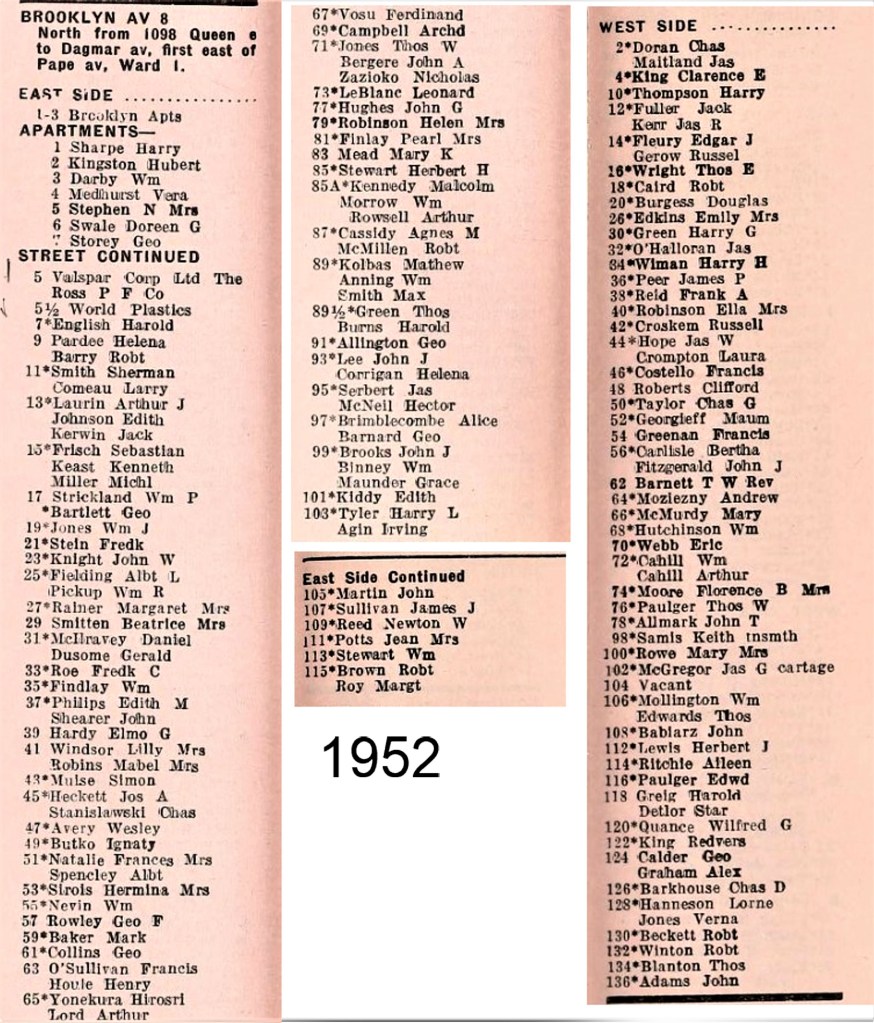Leslie Creek started on the hill north of Blake Street, crossed the track, and ran down west of Leslie Street to cross Jones Avenue where this unfortunate woman’s house was. The creek was slow, muddy and a breeding ground for mosquitos which is why Lesliegrove Park was called “Mosquito Park.”