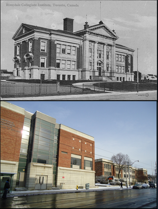 Previous Image Next Image Riverdale Collegiate Then and Now Top: Postcard, c. 1906, photographer unknown. Bottom 2014, photographer Julia Patterson.