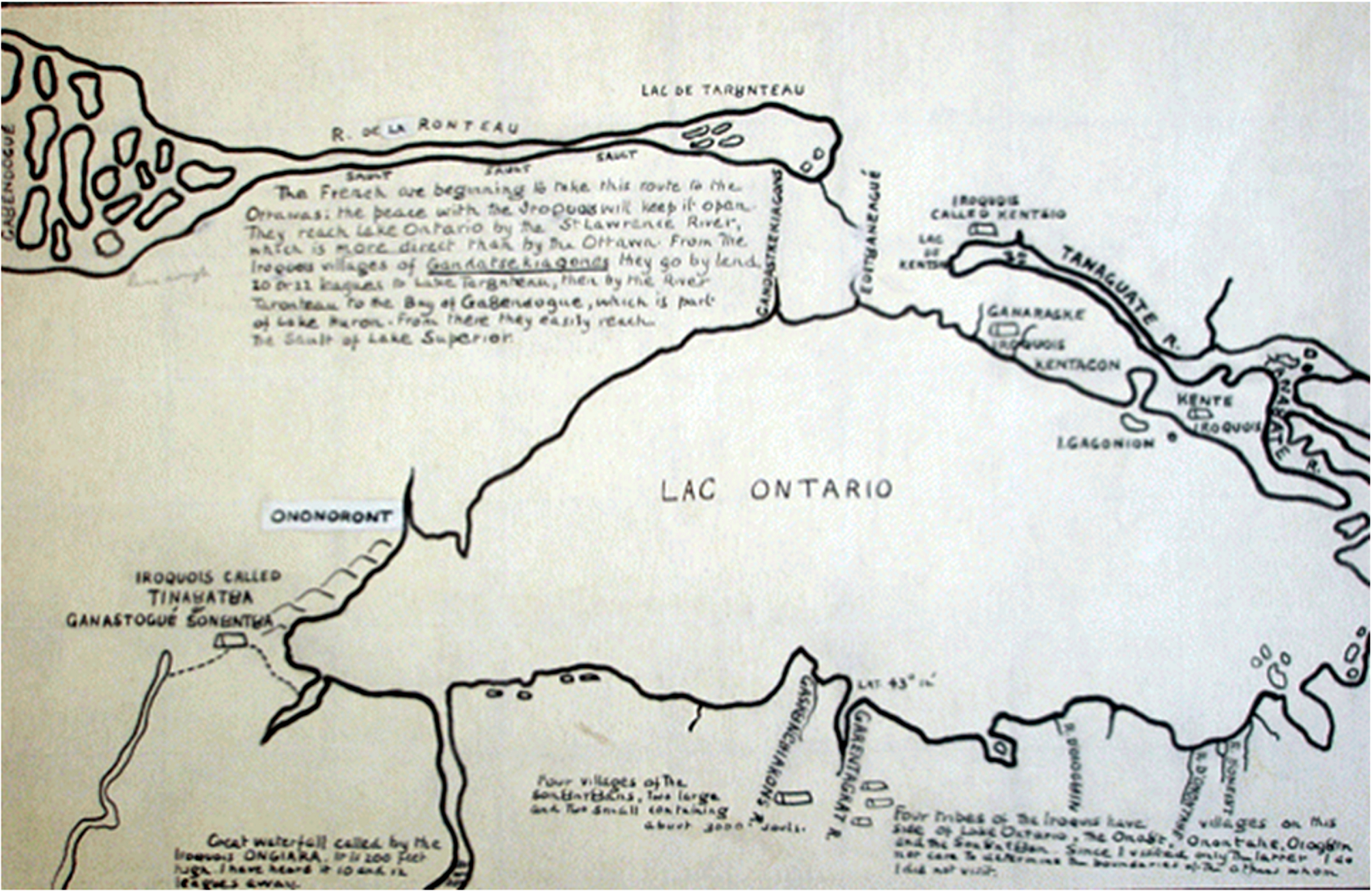 Percy Robinson’s tracing and translation of Galinée’s second map of 1670 in Ron Williamson, It’s Not The Trail: It’s The Land It Crosses, originally published January 13, 2010.