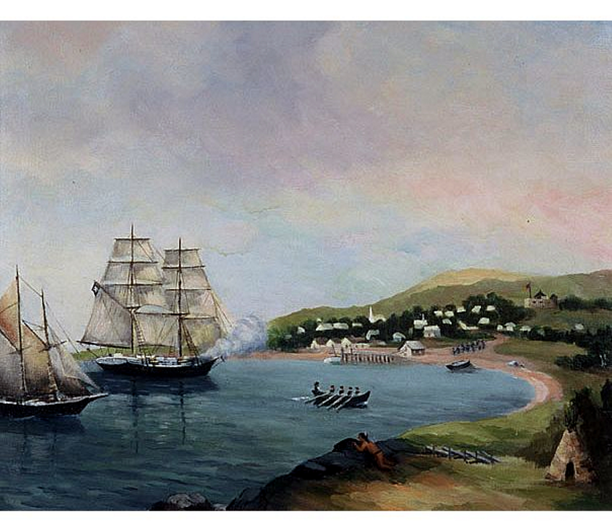Sack of Lunenburg, Nova Scotia, Canada (1782) A J Wright c 1900. Although this painting by an untrained artist is of different raid almost 40 years after the attack on Ingonish, it does convey an eerie sense of impending doom. No known depictions of the raid on Ingonish exist.